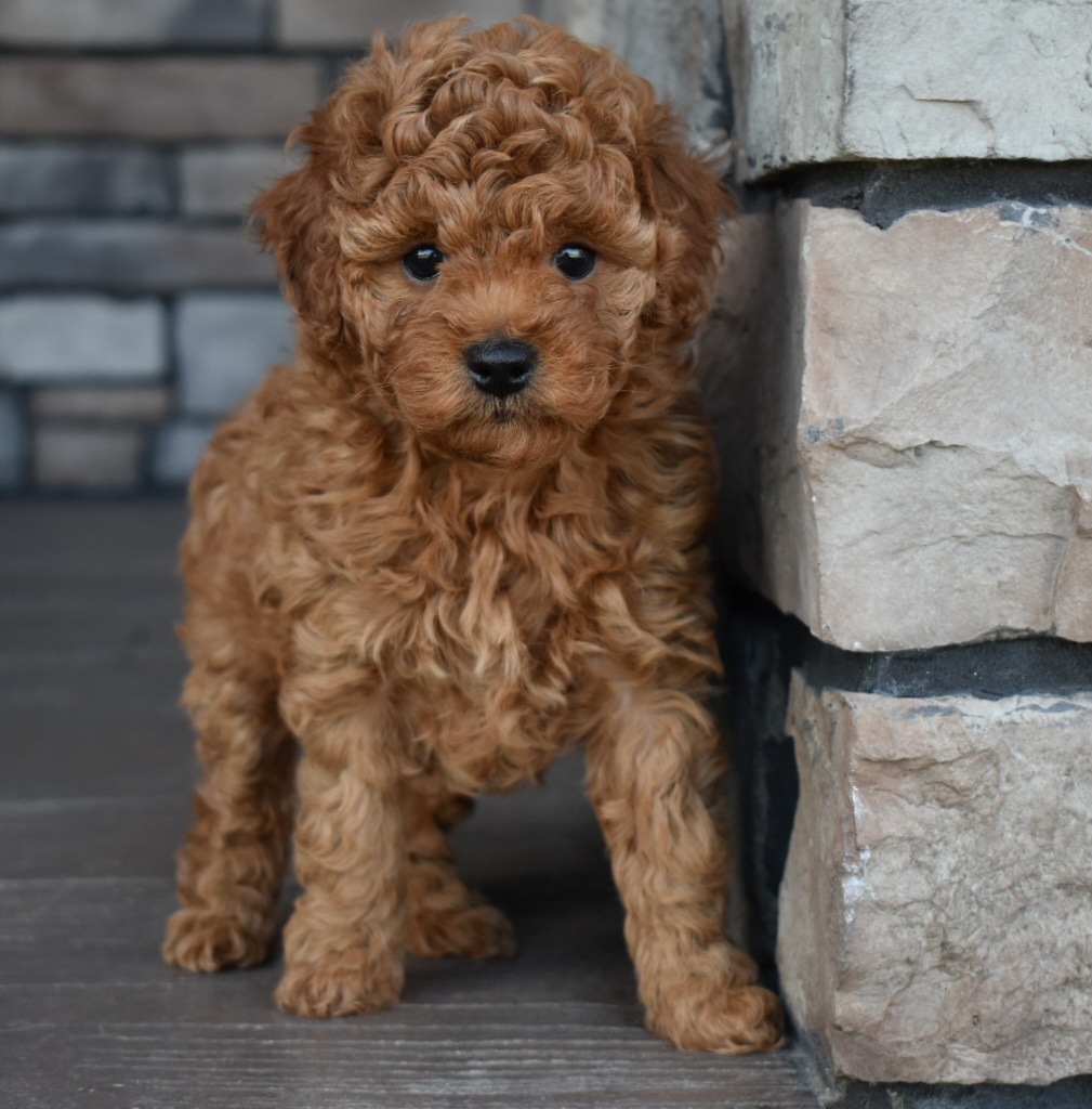 These pups are all f1b mini goldendoodle. ……Meaning mom is an f1 mini goldendoodle, dad a mini poodle